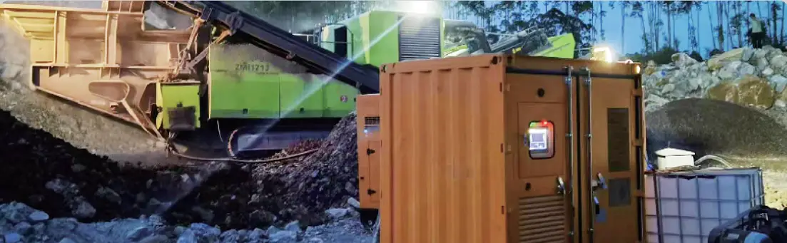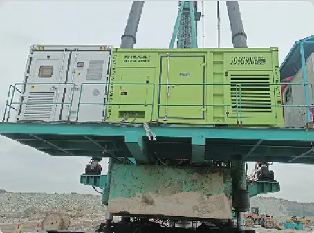 Our company configured a smart power station for the project to provide power for the mobile crushing production line, and to assist the on-site small equipment and domestic electricity. Noise pollution had been significantly controlled, reduced to less than 70db, and fuel consumption per hour has been reduced to 50L-60L.